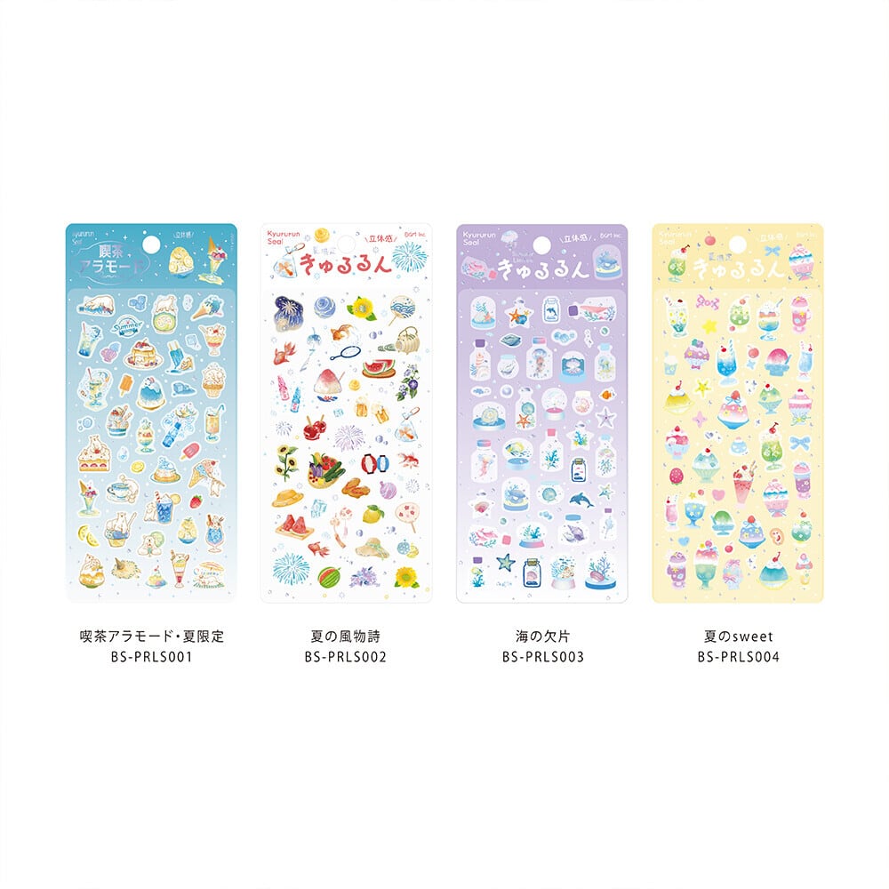 きゅるるんシールのご案内です 2026夏シリーズ ・喫茶アラモード ・夏の風物詩 ・海の欠片 ・夏のsweet 大人気の「きゅるるんシール」から2026夏限定デザインが登場! きゅるるんとした立体デザインが魅力的 子供から大人まで心ときめく、キラキラな夏デザインに仕上がりました ※入荷予定は5月下旬です。 ※入荷次第、順次発送いたします。 販売開始までお待ち下さいませ。