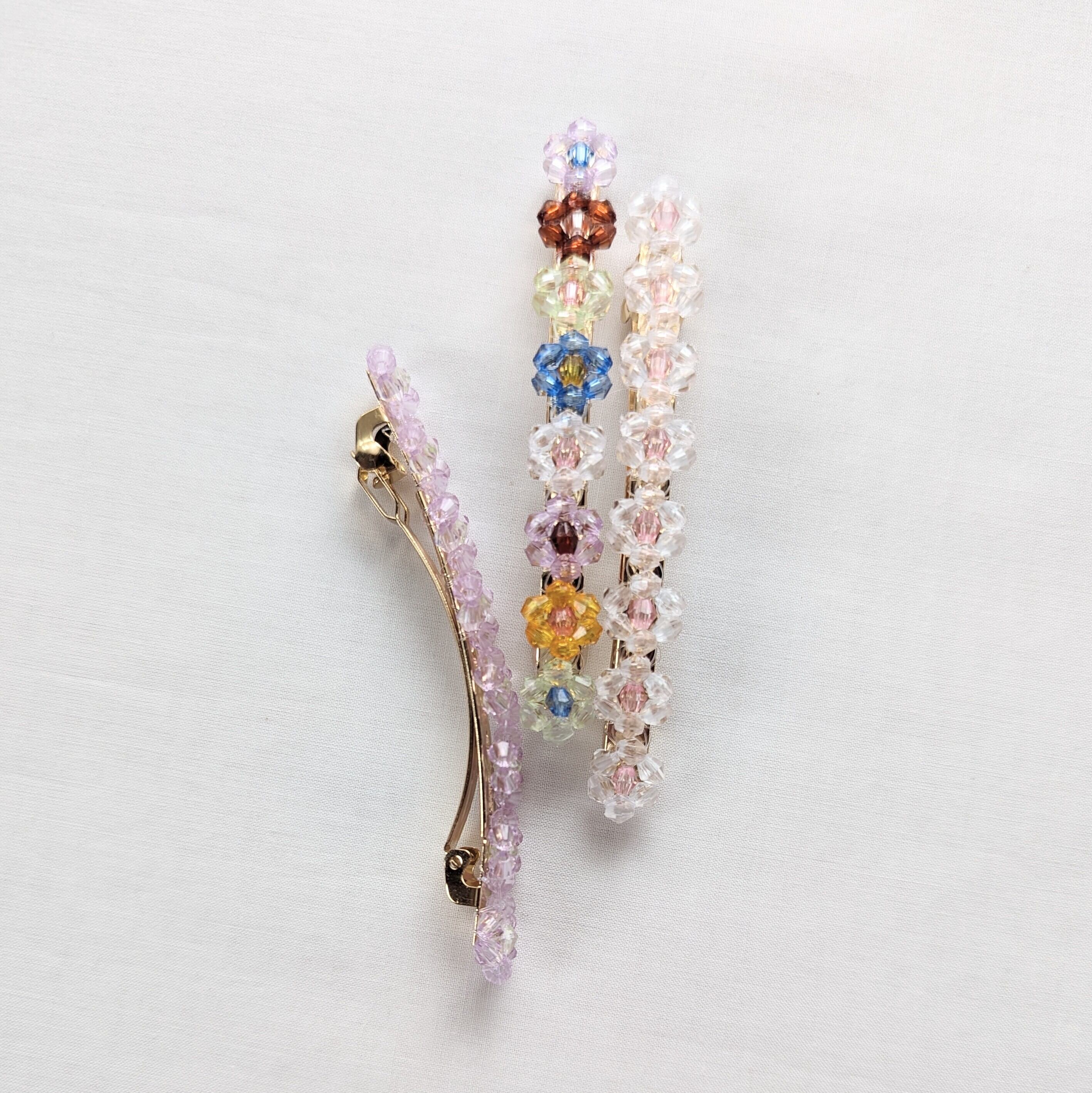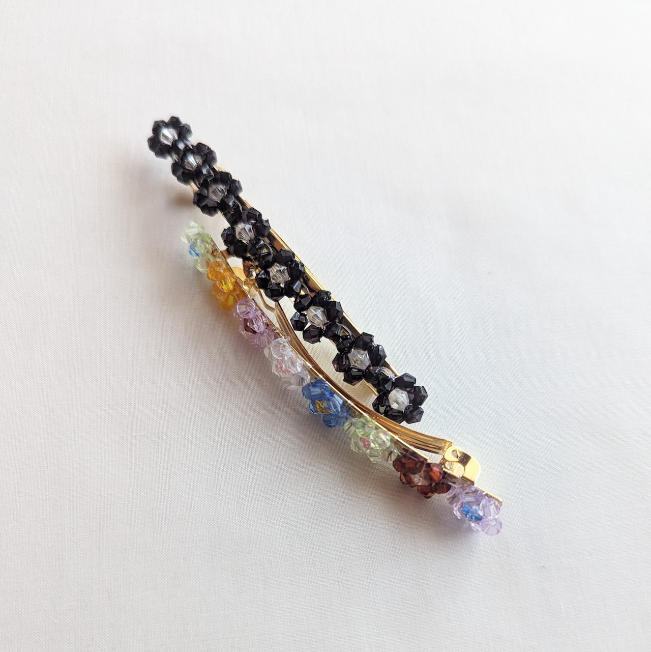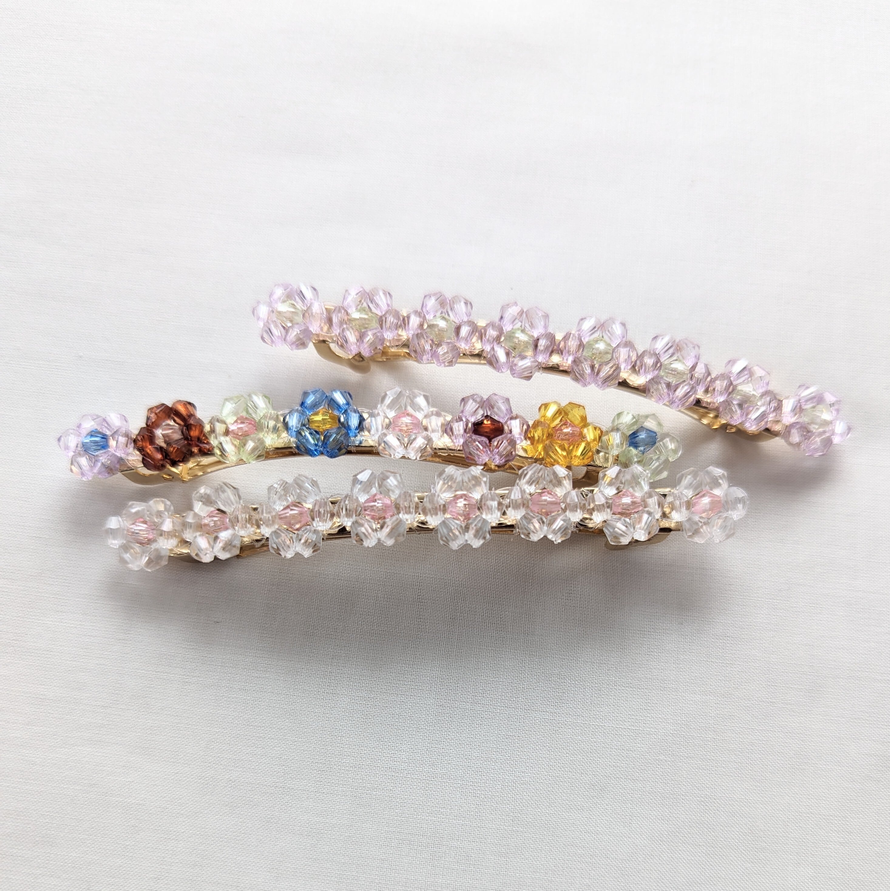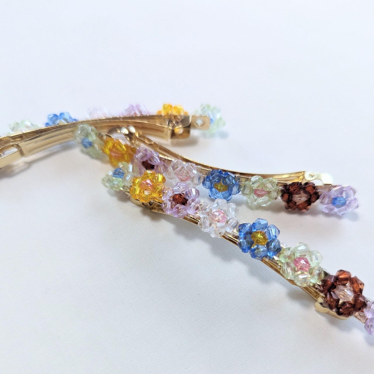 細く華奢なシルエットがかわいいフラワーバレッタです。