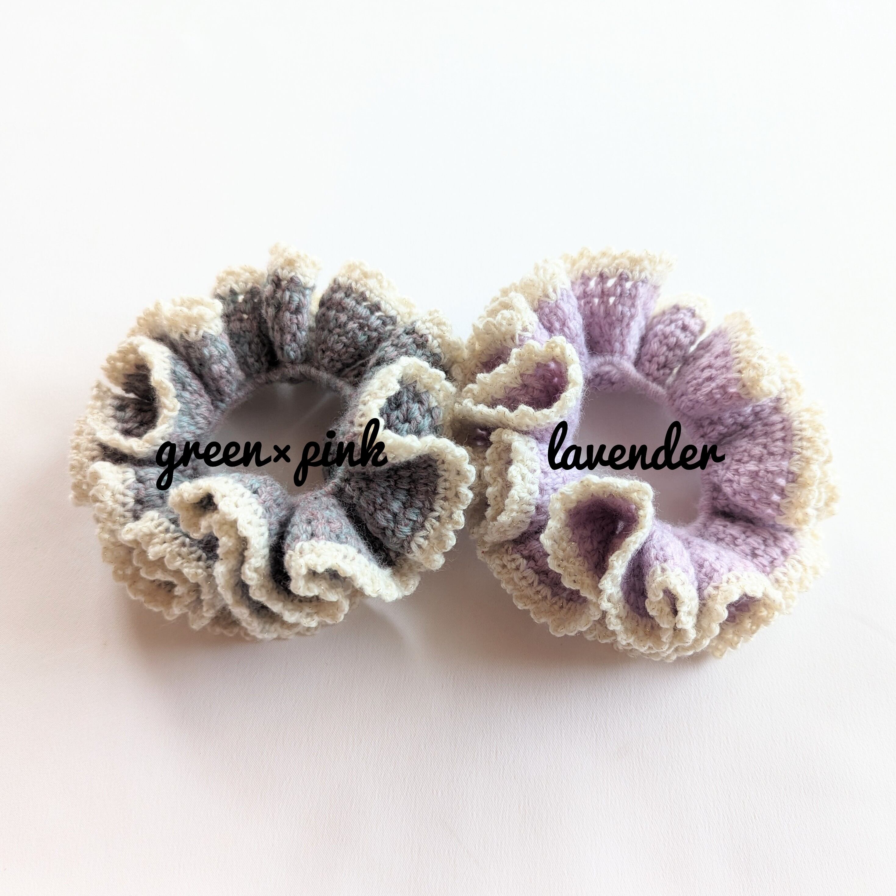 knit scrunchie / green×pink・lavender